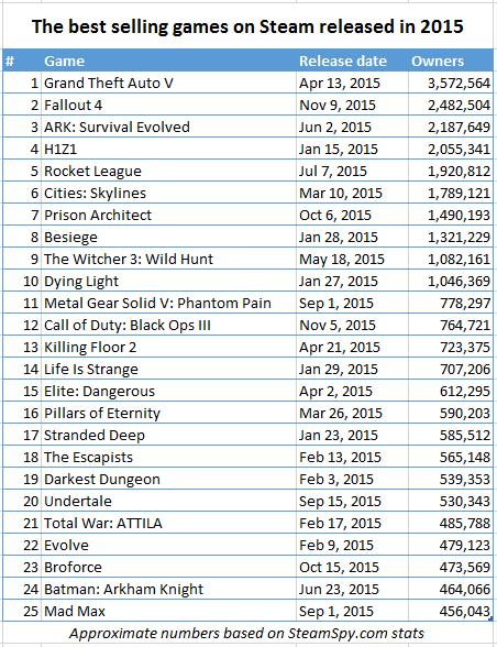 Rocket League, H1Z1 e ARK também tiveram boas vendas